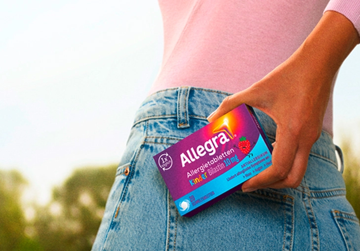 Allegra® Schmelztabletten für Kinder helfen bei allergisch bedingten Symptomen an Nase, Augen und Haut. Sie sind geeignet für Kinder von 6–11 Jahren mit mind. 20 kg Körpergewicht. Die Allergietabletten für Kinder können auch unterwegs leicht eingenommen werden, denn die Schmelztabletten mit Erdbeergeschmack zergehen direkt auf der Zunge. Sie lindern die Allergiesymptome Deines Kindes für 24 Stunden – mit nur einer Tablette am Tag.