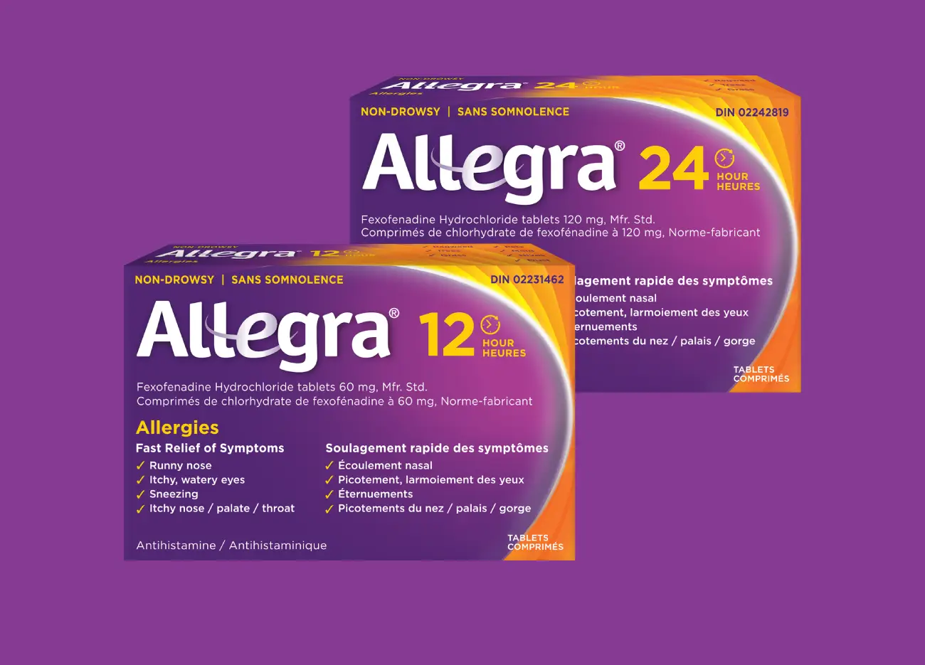 Allegra® delivers fast, non-drowsy allergy symptom relief available in 12 Hour and 24 Hour Tablets.
