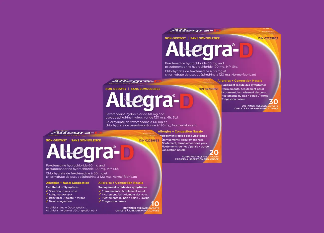 Allegra®-D delivers fast, non-drowsy allergy symptom relief, including the temporary relief of nasal congestion for 12 Hours.