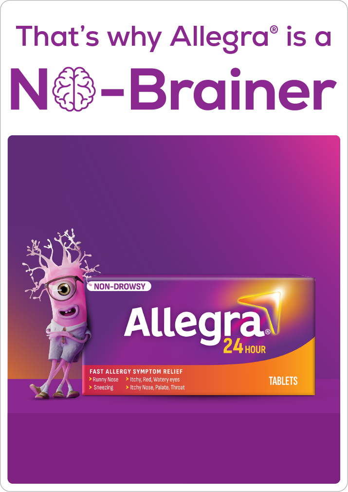 Allegra® delivers fast, non-drowsy allergy symptom relief available in 12 Hour and 24 Hour Tablets.