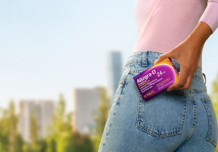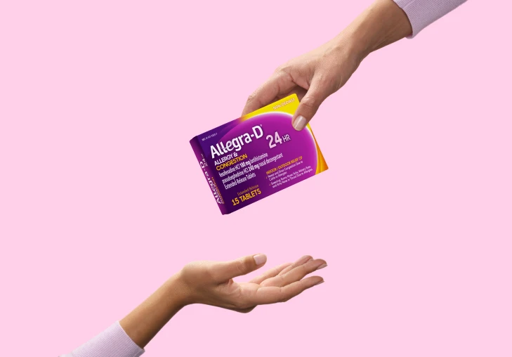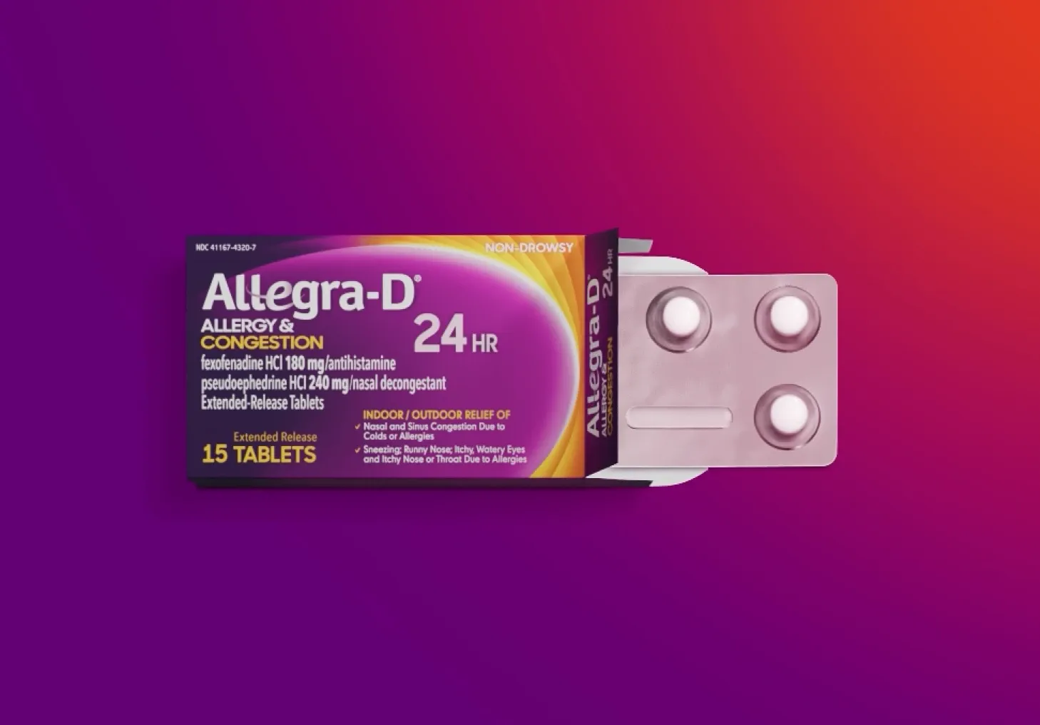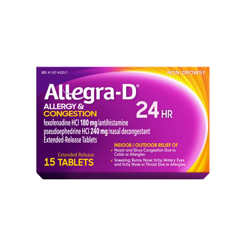 When nasal congestion and allergy symptoms hit, Allegra-D® is here to clear things up! Pseudoephedrine (PSE), a clinically proven decongestant, reduces swelling of the nasal passage, while Fexofenadine effectively relieves allergy symptoms. Allegra-D® tackles tough allergy symptoms and nasal congestion, so you can breathe easy and feel good all day.
