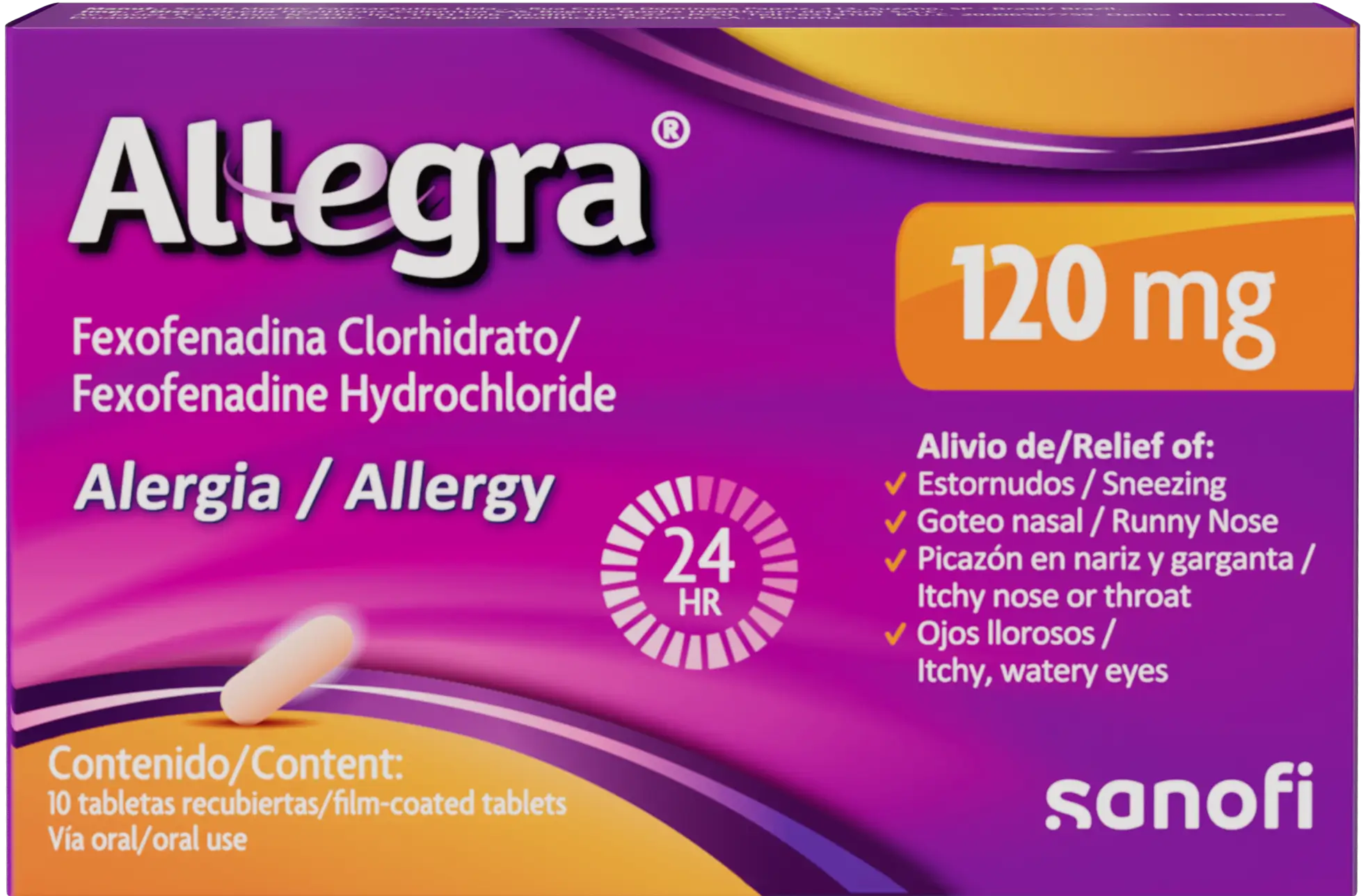 Allegra® 120 está indicado para el alivio de los síntomas asociados con la rinitis alérgica. Para más información consulte a su médico.