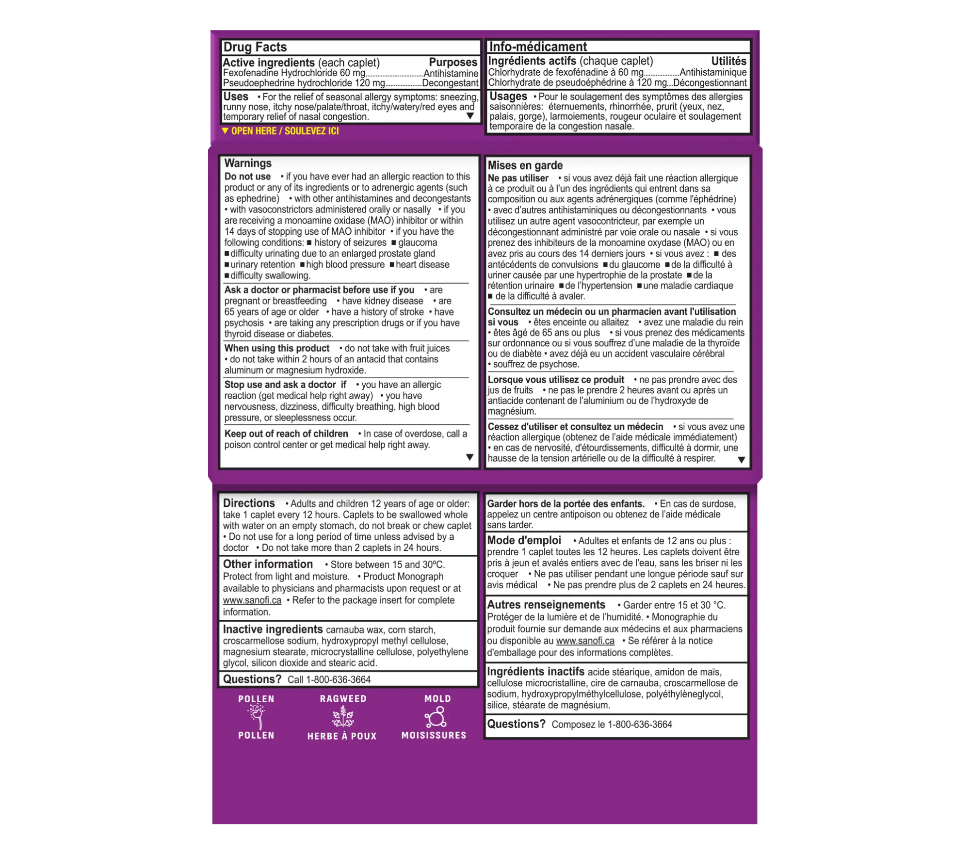 Allegra®-D contient de la pseudoéphédrine, un décongestionnant nasal qui agit en soulageant la congestion nasale et l’enflure des voies nasales.