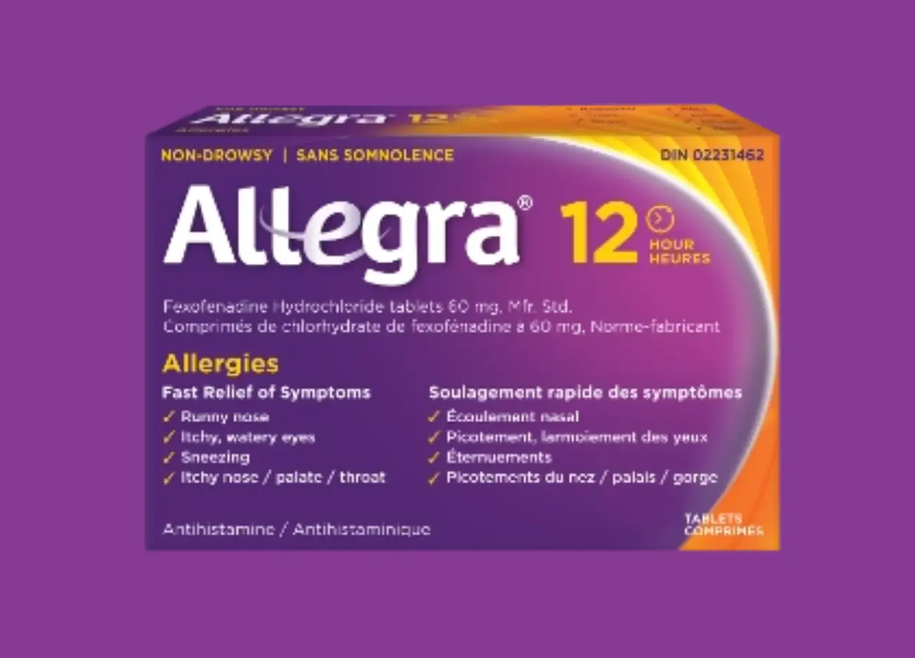 Soulagez vos symptômes d’allergies comme l’écoulement nasal, les éternuements, les larmoiements et les picotements des yeux, du nez ou de la gorge. Allegra® 24 heures agit rapidement, fait effet toute la journée et ne cause aucune somnolence.