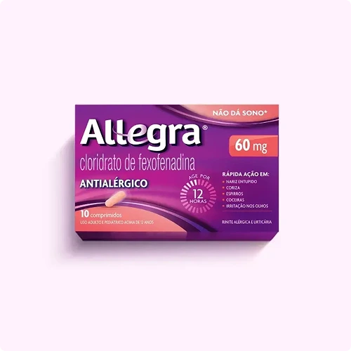 ALLEGRA® (cloridrato de fexofenadina). Indicações: é um anti-histamínico destinado ao tratamento das manifestações alérgicas, tais como sintomas de rinite alérgica (incluindo espirros, obstrução nasal, prurido, coriza, conjuntivite alérgica) e urticária (erupção avermelhada e pruriginosa na pele). MS: 1.8620.0010. O USO DO MEDICAMENTO PODE TRAZER ALGUNS RISCOS. Leia atentamente a bula. SE PERSISTIREM OS SINTOMAS, O MÉDICO DEVERÁ SER CONSULTADO. Maio/2023. MAT-BR-2301824