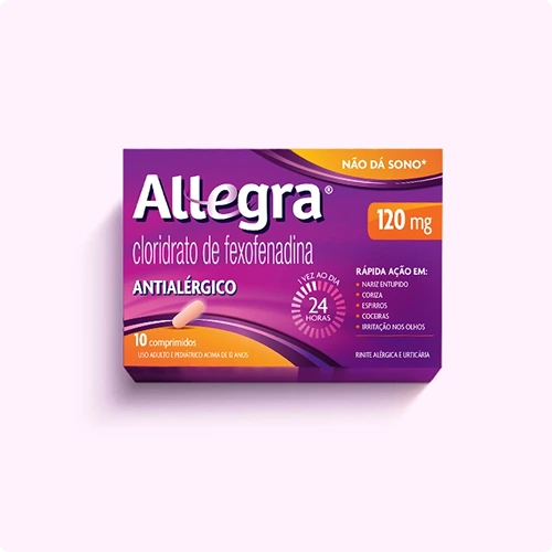 Allegra®, é composto por fexofenadina e é um dos medicamentos que pertence à classe de anti-histamínicos de 2a geração, caracterizados por não se ligarem aos receptores de histamina localizados no Sistema Nervoso Central. A fexofenadina não causa sonolência, independentemente da dose usada.
