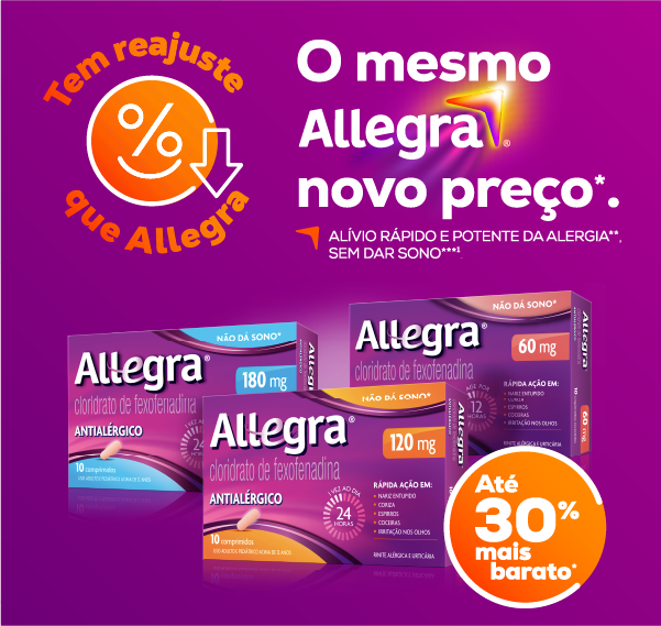 *Em relação ao preço máximo ao consumidor (PMC) de 2025. Válido para as apresentações 60mg x 10 comprimidos, 120mg x 10 comprimidos, 120mg x 20 comprimidos e 180mg x 10 comprimidos.