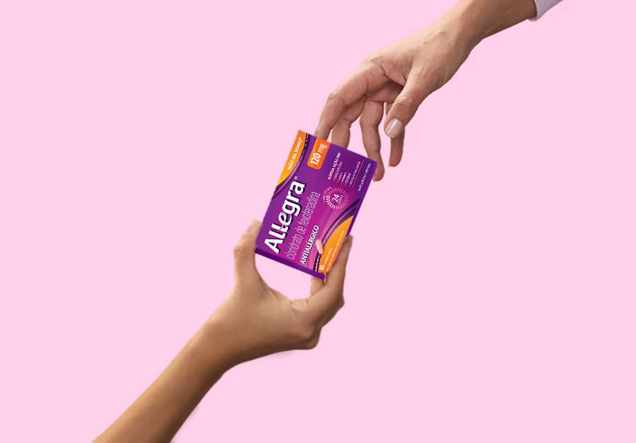 ALLEGRA® (cloridrato de fexofenadina). Indicações: é um anti-histamínico destinado ao tratamento das manifestações alérgicas, tais como sintomas de rinite alérgica (incluindo espirros, obstrução nasal, prurido, coriza, conjuntivite alérgica) e urticária (erupção avermelhada e pruriginosa na pele). MS: 1.8620.0010. O USO DO MEDICAMENTO PODE TRAZER ALGUNS RISCOS. Leia atentamente a bula. SE PERSISTIREM OS SINTOMAS, O MÉDICO DEVERÁ SER CONSULTADO. Mar/2025. MAT-BR-2501100