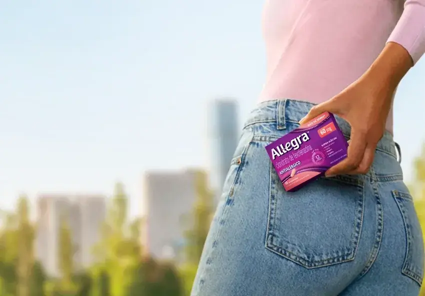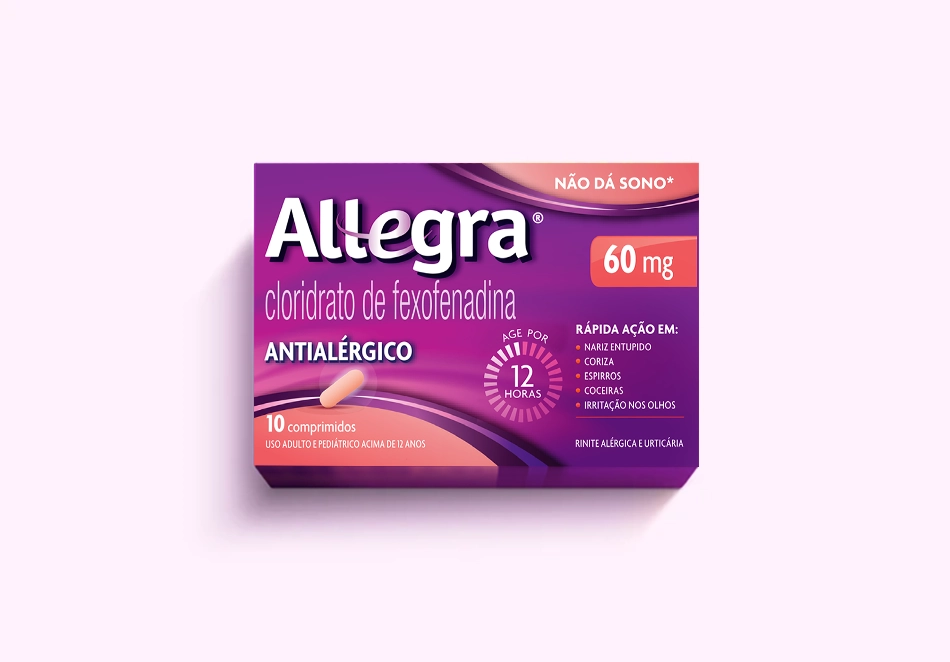 ALLEGRA® (cloridrato de fexofenadina). Indicações: é um anti-histamínico destinado ao tratamento das manifestações alérgicas, tais como sintomas de rinite alérgica (incluindo espirros, obstrução nasal, prurido, coriza, conjuntivite alérgica) e urticária (erupção avermelhada e pruriginosa na pele). MS: 1.8620.0010. O USO DO MEDICAMENTO PODE TRAZER ALGUNS RISCOS. Leia atentamente a bula. SE PERSISTIREM OS SINTOMAS, O MÉDICO DEVERÁ SER CONSULTADO. Mar/2025. MAT-BR-2501100